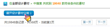 二、進入素材搜索功能頁面,點擊‘展開設計素材分類’