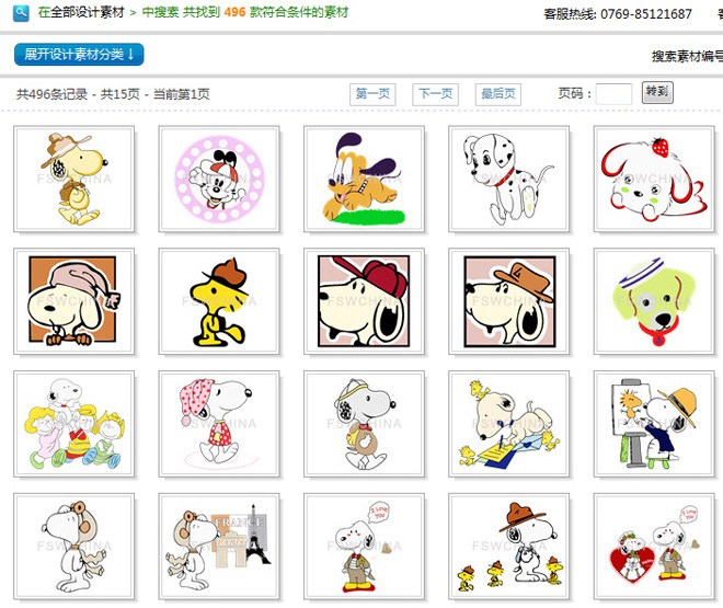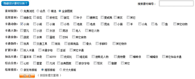 在‘全部素材’里找屬于‘小狗’類型的設計素材,并按‘推薦度’來進行排序。