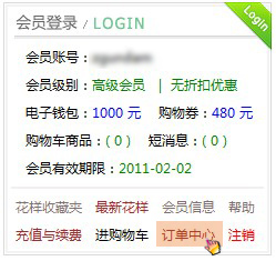 第一步,使用會員賬號登錄網(wǎng)站,選擇‘訂單中心’。