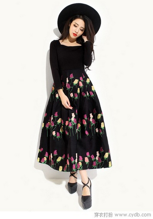 也許你比較偏向純色的素雅,而我卻喜歡推薦印花裙的獨(dú)特。大裙擺上的花朵,讓純黑色都變得饒有趣味,也許更適合你的毛呢大衣哦。