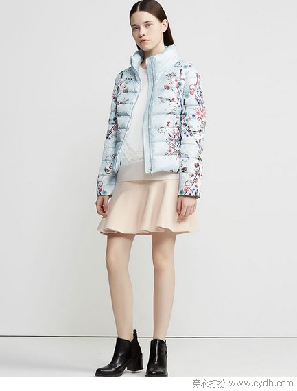 印花有很多種可能,就像春天也有很多可能,繁花似錦璀璨奪目,也有素雅溫和低調(diào)安然。藍色為底,未見花朵靈動先行。喜鵲登高枝,多么俗氣而又多么喜慶的圖案啊,花姑娘俏迎春,從羽絨服開始吧。