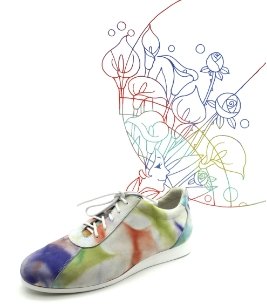 插畫大膽采用白色馬蹄蓮、紅色玫瑰等抽象花卉元素,沿用鞋履本身的繽紛色彩,表達(dá)對(duì)愛和美的不懈追求,襯托著ldquo;幻彩印花rdquo;鞋履更具春日爛漫,也更添藝術(shù)氣息。