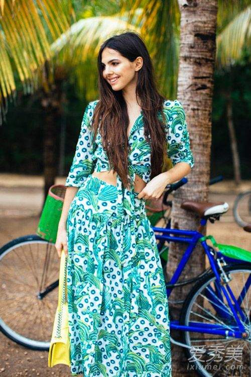 夏天你最需要的是印花裙,各種印花裙簡(jiǎn)直看得人眼花繚亂。上下兩截式的印花裙小露蠻腰,清新活潑的綠色印花盡顯熱帶風(fēng)情,明媚、甜美、不失小性感,配上風(fēng)情萬(wàn)種的長(zhǎng)卷發(fā),真是太美了。