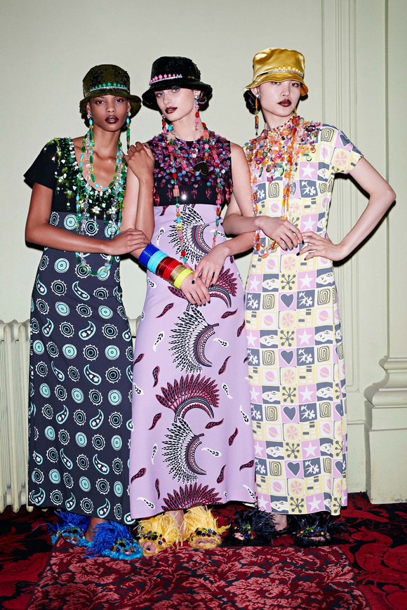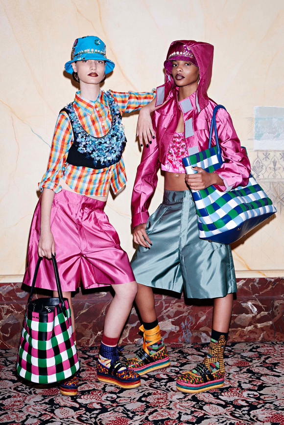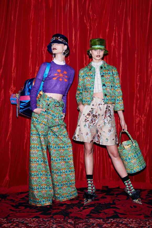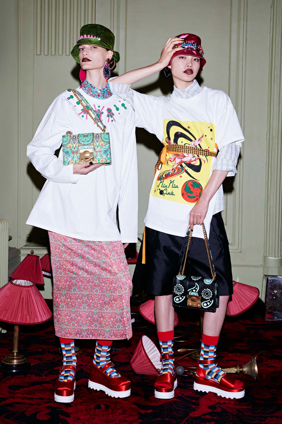 Miu Miu 繆繆這一季,跟以往一樣,無(wú)論從T恤、裙子還是編織草帽,都是強(qiáng)調(diào)印花與裝飾。這些元素未必能引起90零后的懷舊感,因?yàn)樗麄儗?shí)在太年輕了。但這完全一點(diǎn)都沒(méi)有關(guān)系,她們看起來(lái)就像一系列色彩繽紛的度假服飾系列。