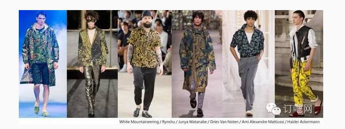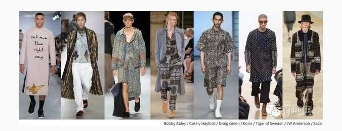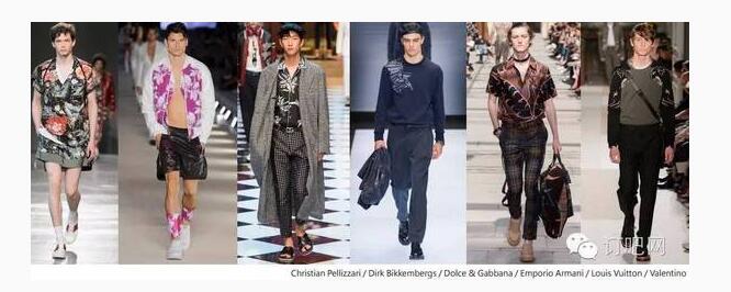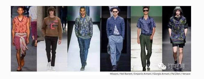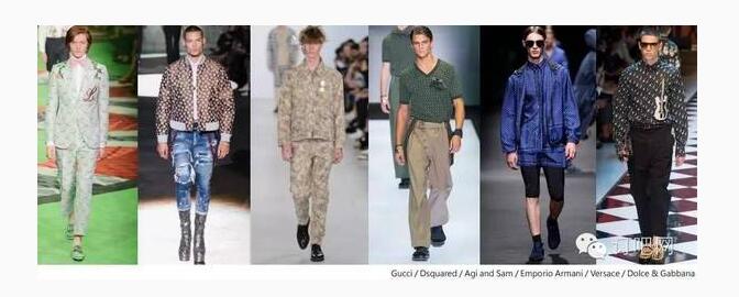 綜觀 2017 春夏巴黎、米蘭、倫敦男裝周,未來男裝在印花圖案的呈現(xiàn)上將混合 70 年代、80 年代和 90 年代元素,變化出一種新時代的改良風(fēng)格。整體來說,沒有明確的季節(jié)性,多采中性的暗色調(diào)色板。叛逆非主流的醒目圖像為服裝營造出硬派的都會街頭風(fēng)格。經(jīng)典的條紋延續(xù)至明年春夏,以優(yōu)雅的休閑風(fēng)或時尚的條紋混搭,呈現(xiàn)不同的條紋風(fēng)情。中東風(fēng)格的精美花紋是現(xiàn)代花美男的優(yōu)選,同時符合環(huán)球旅行者的出走潮流。此外,不規(guī)律的重復(fù)碎花、叢林迷彩、稀有動植物、幾何圖案,也仍保有重要地位。