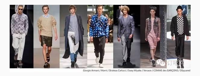 翻新商業(yè)模式的棋盤格圖案,以扭歪、偏移的網(wǎng)格圖案,搭配亮眼襯衫或是外套,成為 2017 春夏男裝的理想選擇。例如 Marni 正規(guī)棋盤格圓領(lǐng)衫搭配休閑短褲,流露出休閑的度假韻味;Giorgio Armani 結(jié)合菱形窗欞及十字徽章變化出新格紋;Issey Miyake 以粗細不同的線條拼貼組合的格紋圖樣;以及 Strateas Carlucci 階梯狀的棋盤格大衣與 Versace 以斜線交錯出的條格紋西裝,都有股休閑的雅痞風(fēng)格。