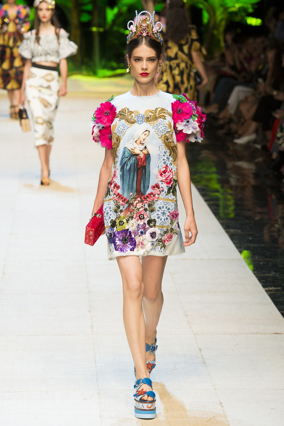 明快富足的鮮花永遠(yuǎn)盛開(kāi)在Dolce Gabbana充盈的裙擺上少女的水嫩色彩在奢華的綢緞和質(zhì)地中呼之欲出,新系列中極致手工的繡花細(xì)節(jié)翩然浮現(xiàn)。或是迎合薄紗的質(zhì)感,或是演繹浮雕紋飾的立體花卉,歡脫爛漫的少女氣質(zhì)在行走之間彌漫,嫣然含笑之間潔凈無(wú)瑕,喜歡金屬唇妝,也有顆溫柔爛漫的少女之心。毋庸置疑,沒(méi)有女人會(huì)拒絕花朵帶來(lái)的優(yōu)雅和清新,少女更是和花語(yǔ)心靈相通。服飾上析出彎曲纏繞的藤蔓花朵,大片盛開(kāi)在少女纖細(xì)的腰間、胸口、裙擺。。。還有波點(diǎn),我想 波點(diǎn)只有Dolce Gabbana能用的好看了!