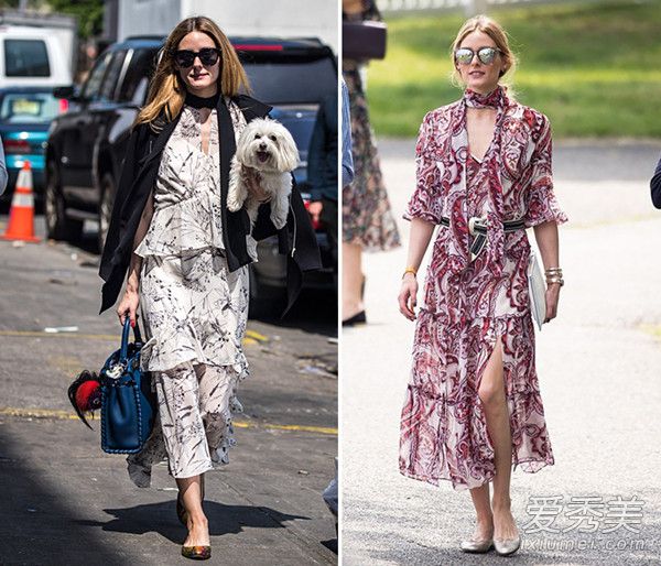 Olivia為你示范深淺兩種花色的荷葉邊裙。淺色更有飄逸感,加上一件秋季小外套,對應(yīng)溫差還能增加層次效果,而深色花紋在這個季節(jié)也很應(yīng)景,適度露膚讓你的早秋比別人都性感一點。