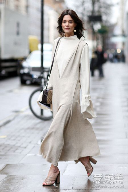 當(dāng)款式復(fù)雜時,簡單的配色能幫助你看起來ldquo;利索rdquo;。如果裙長及腳踝,上半身適度露膚可以顯高,如果不想露肩,選擇V領(lǐng)的上衣也有同樣的效果。