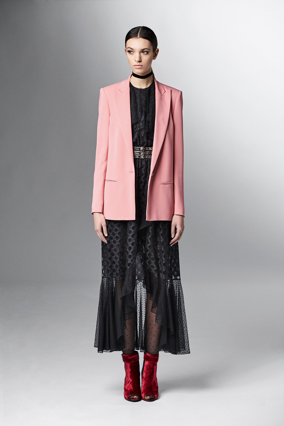 Just Cavalli在這一季的服裝中,大量運(yùn)用了精美的手繪藝術(shù),以及戈布蘭掛毯的復(fù)雜提花花紋圖案,雪紡禮服搭配軍事風(fēng)格的短夾克,或是短斗篷搭配黑色米妮裙,都是令人耳目一新的設(shè)計(jì)。