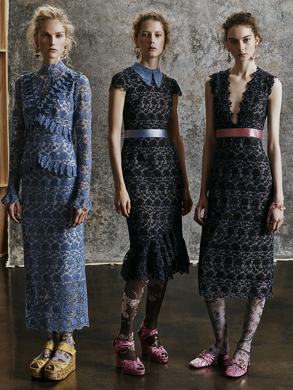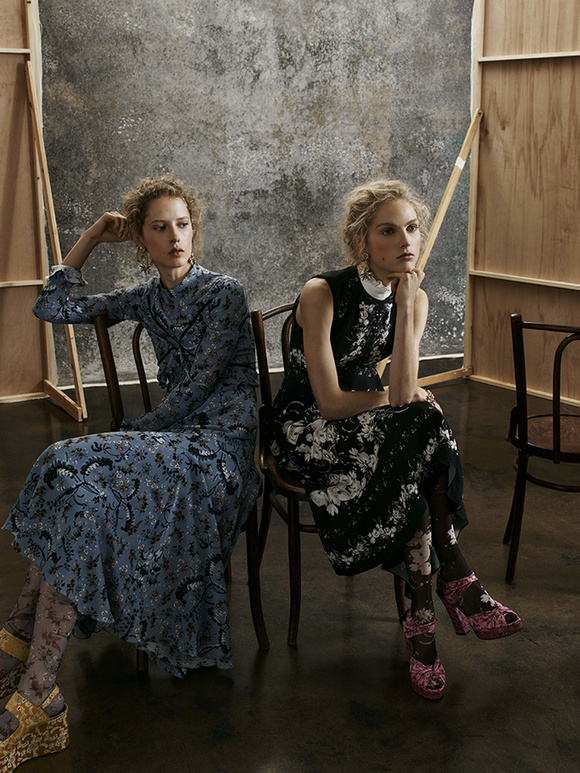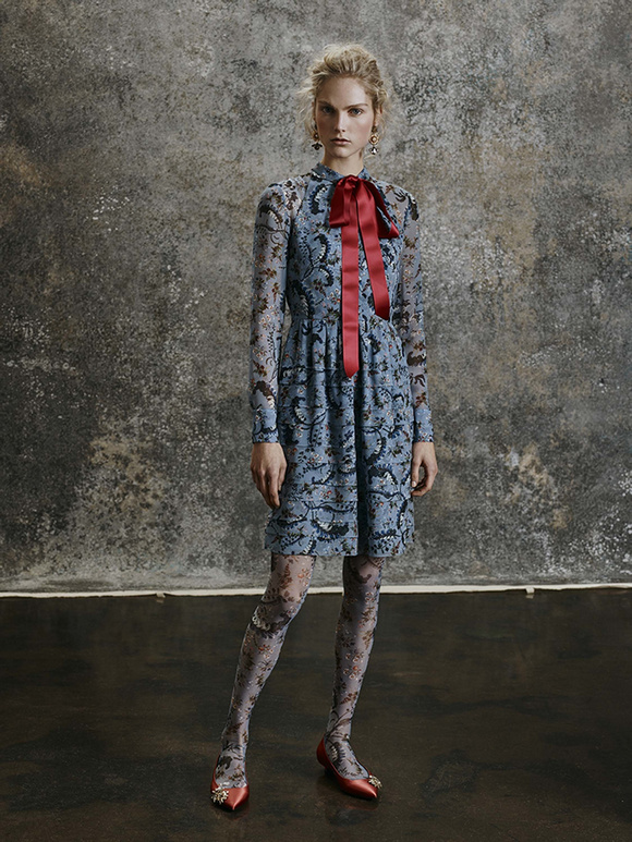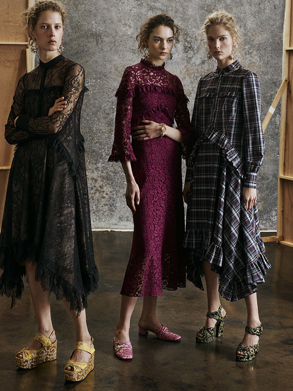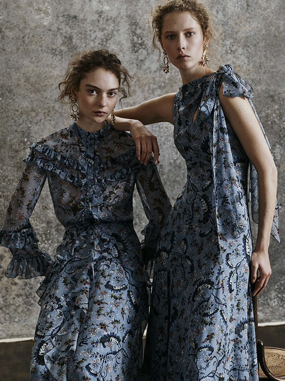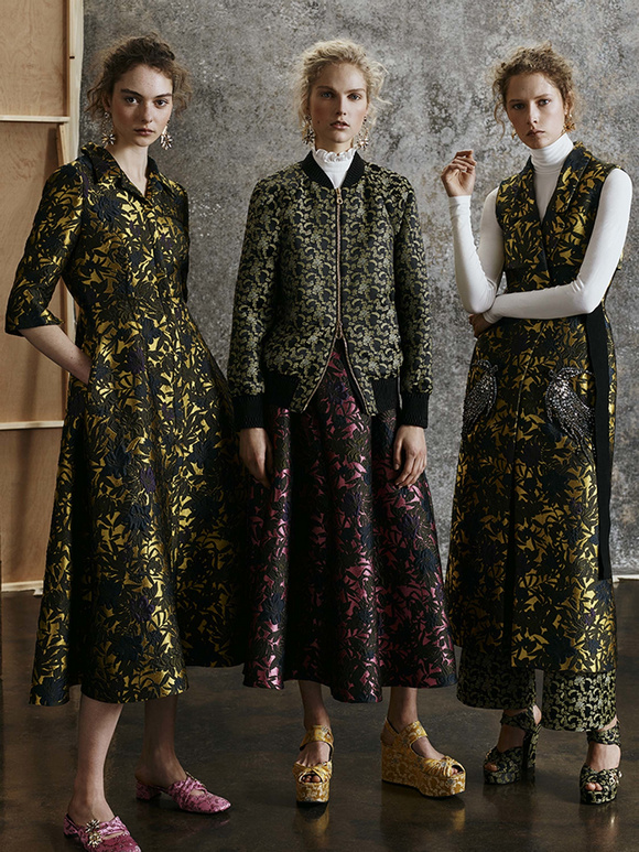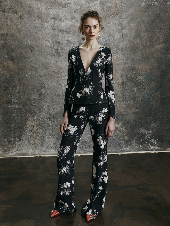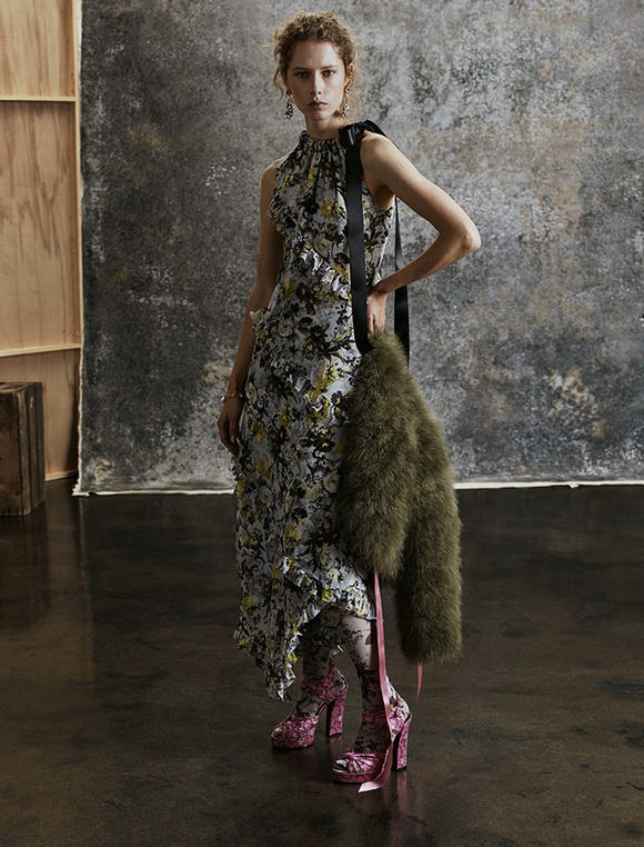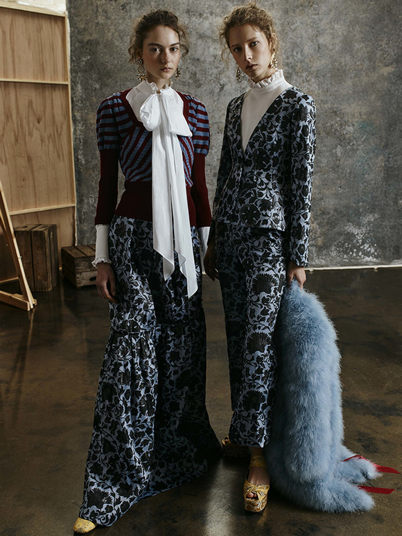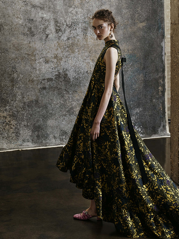 鸛羽毛作為一大亮點,絲綢的襯花配合著40年代設(shè)計,烘托出服裝的復(fù)古華麗。