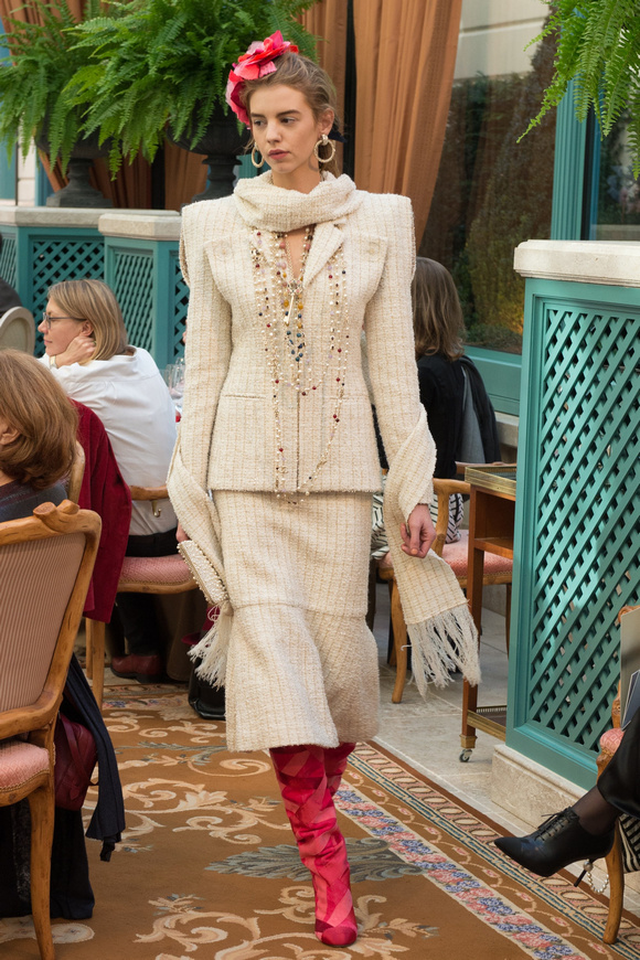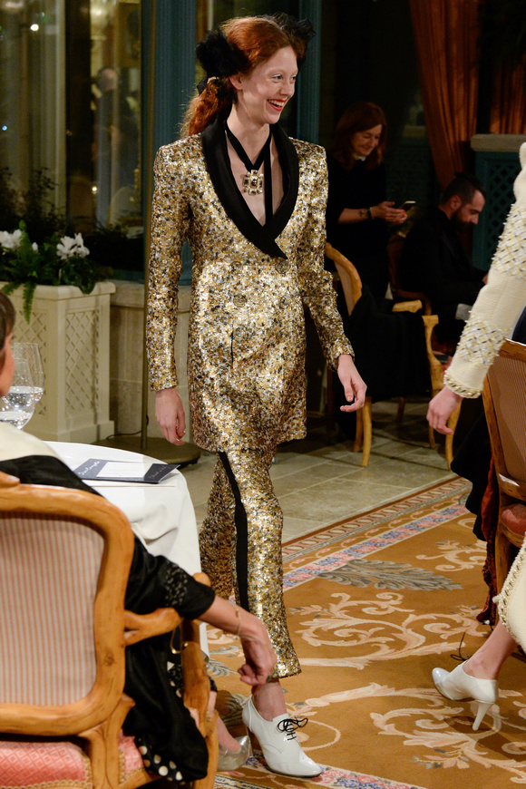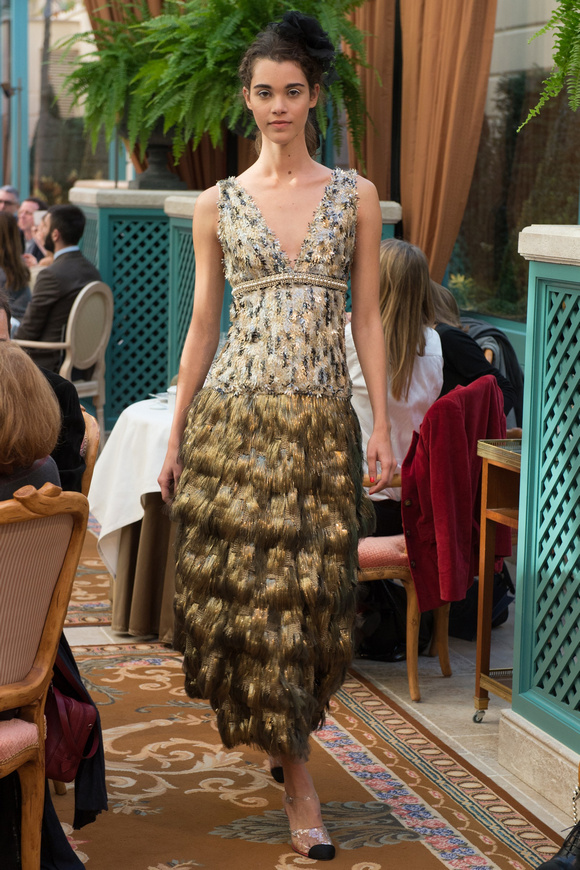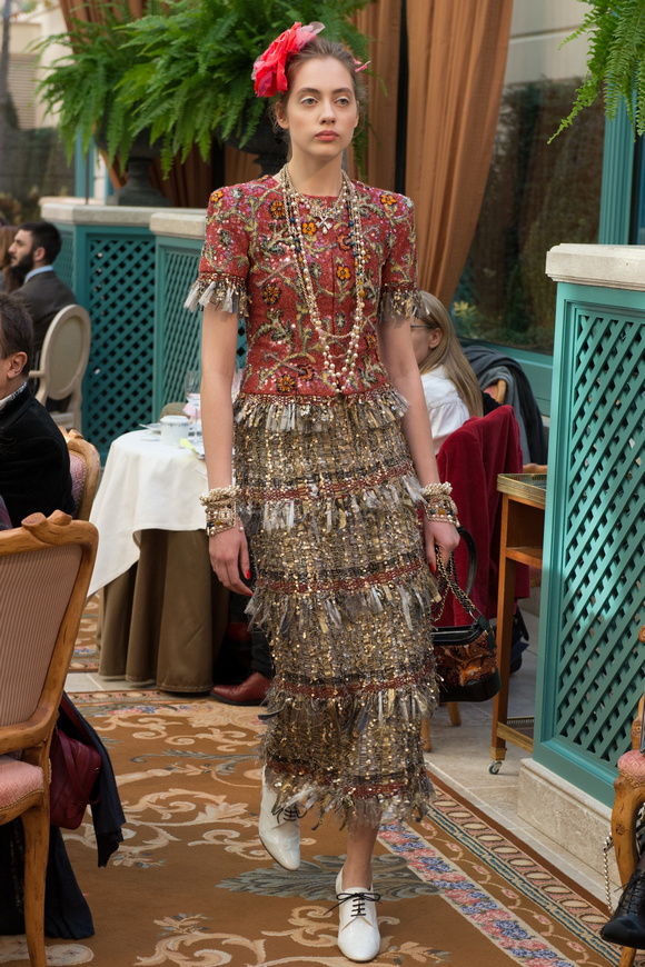 金燦燦的閃片,甚至連羽毛都灑了金粉,Chanel的首席設(shè)計(jì)師卡爾middot;拉格斐,將20,30年代的設(shè)計(jì)元素都揉合在一起,他說(shuō),這就是現(xiàn)代的東西。