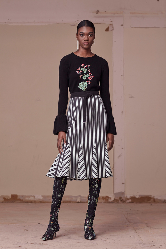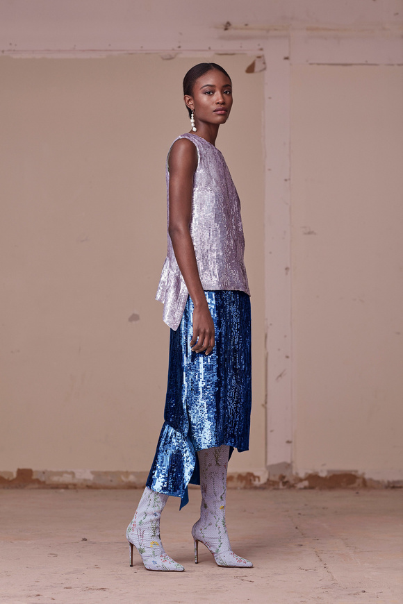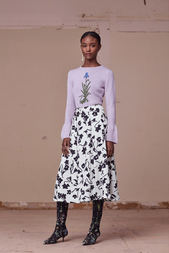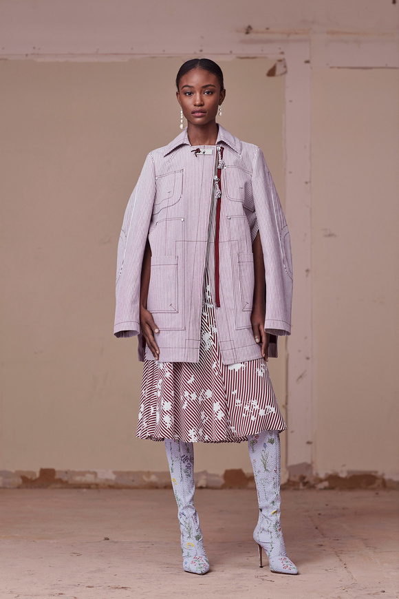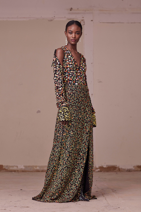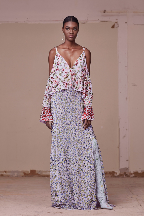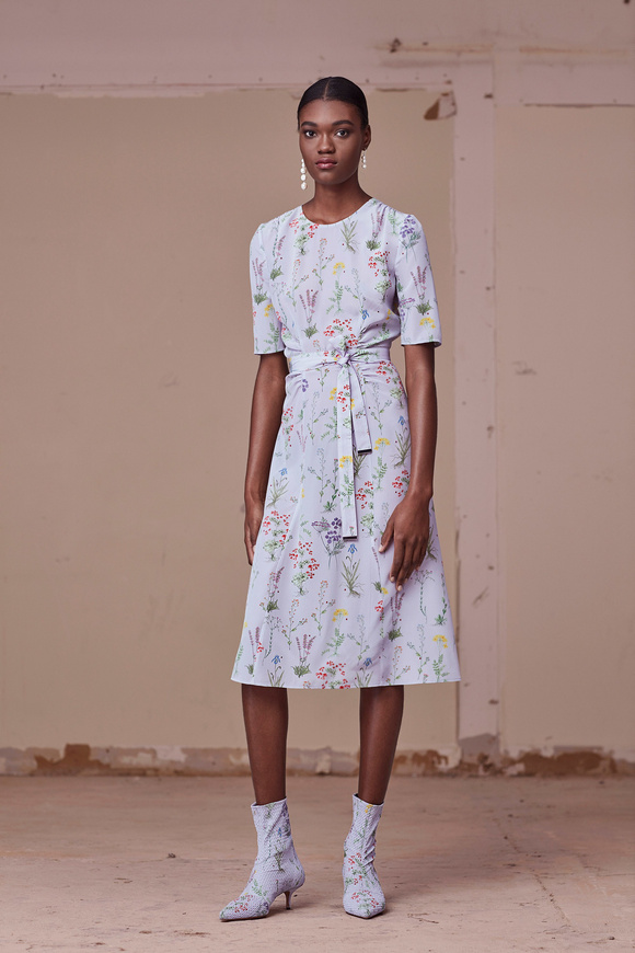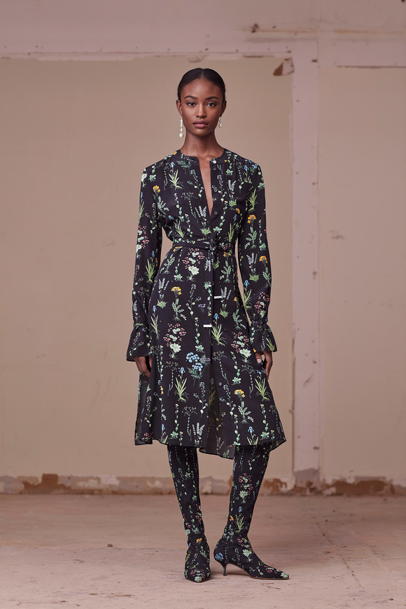 Altuzarra 奧圖扎拉本賽季是拉斐爾前派以及他所說的ldquo;熱愛大自然rdquo;,不是一般強烈的大自然印花而是更柔和、更復(fù)雜的。植物圖案的在衣服袖子輕輕擴散,從夾克的拉鏈到裙子的裁剪,都希望重現(xiàn)維多利亞的風格。