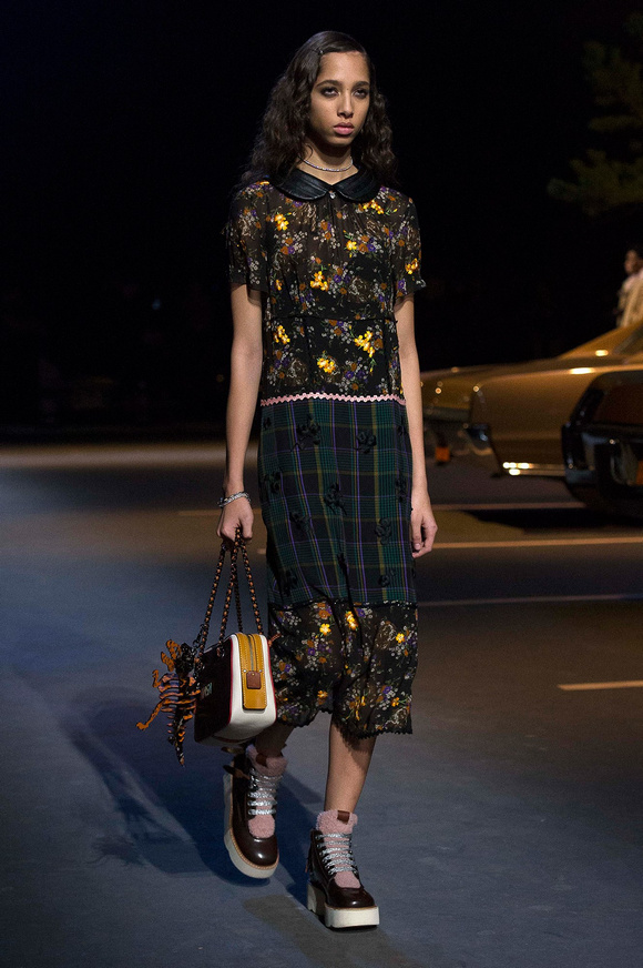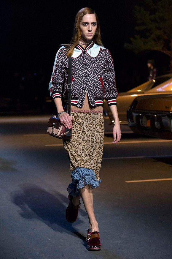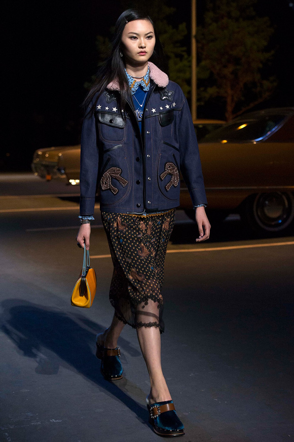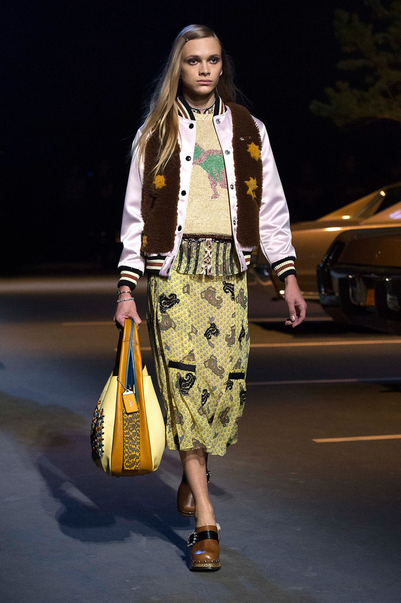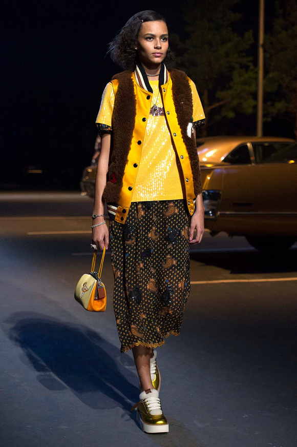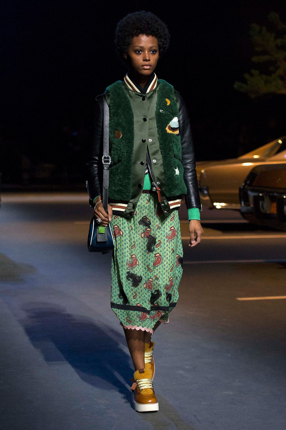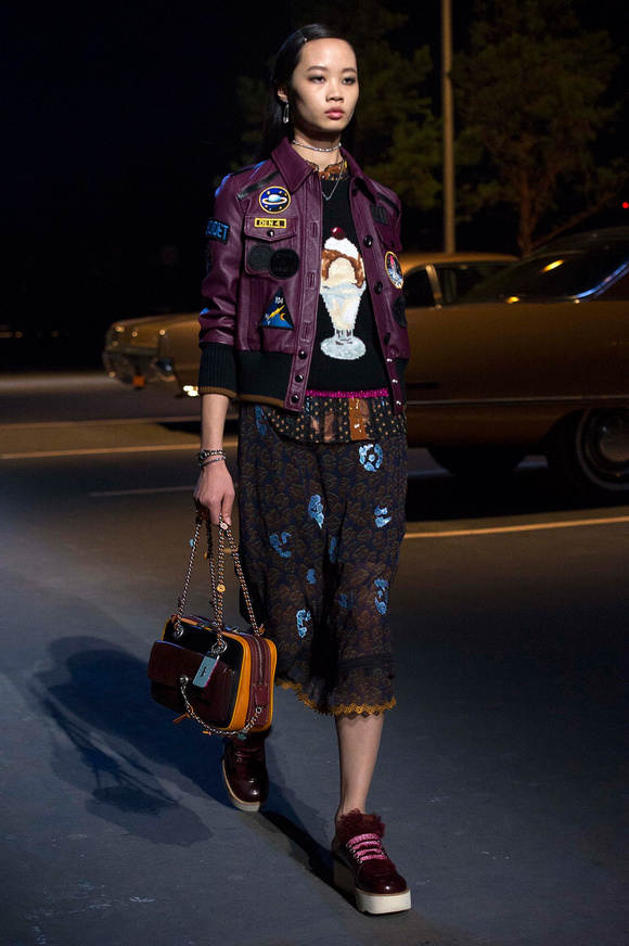 誰也不會想到,在Stuart Vevers來到Coach當(dāng)設(shè)計師前,我們要在一個寒冷的夜晚聚集在94碼頭看時裝發(fā)布會。 作為一個英國人,Vevers對美國有很深的喜愛和好奇。他的設(shè)計,每一次都找到了一種新的方法。一個季節(jié)是牛仔靴-穿著草原女孩,下一個季節(jié)是埃爾維斯的愛騎自行車的寶貝。前秋季是他最折衷混搭。迄今,他統(tǒng)一收集了我們團(tuán)結(jié)和樂觀的想法,反映了真實的的生活。