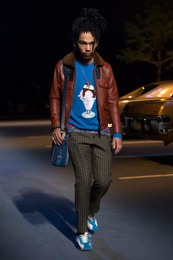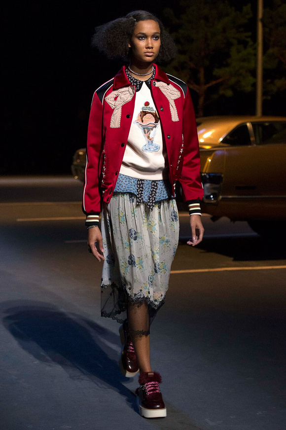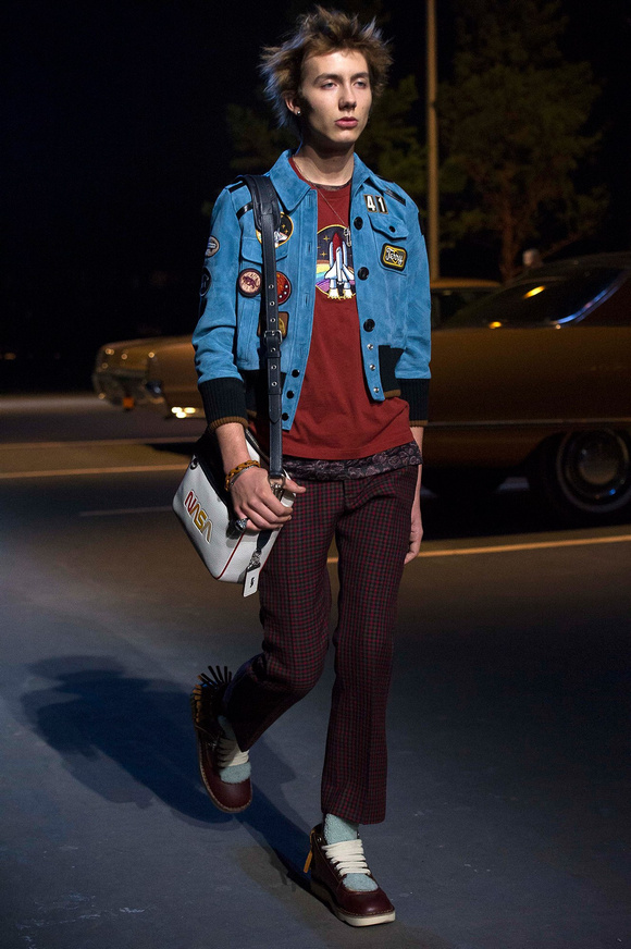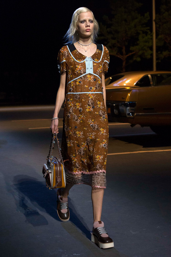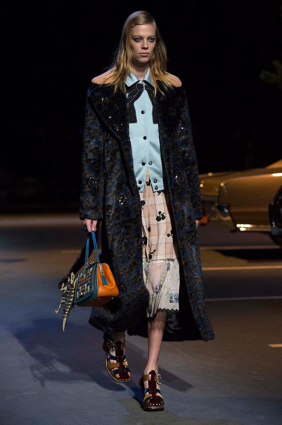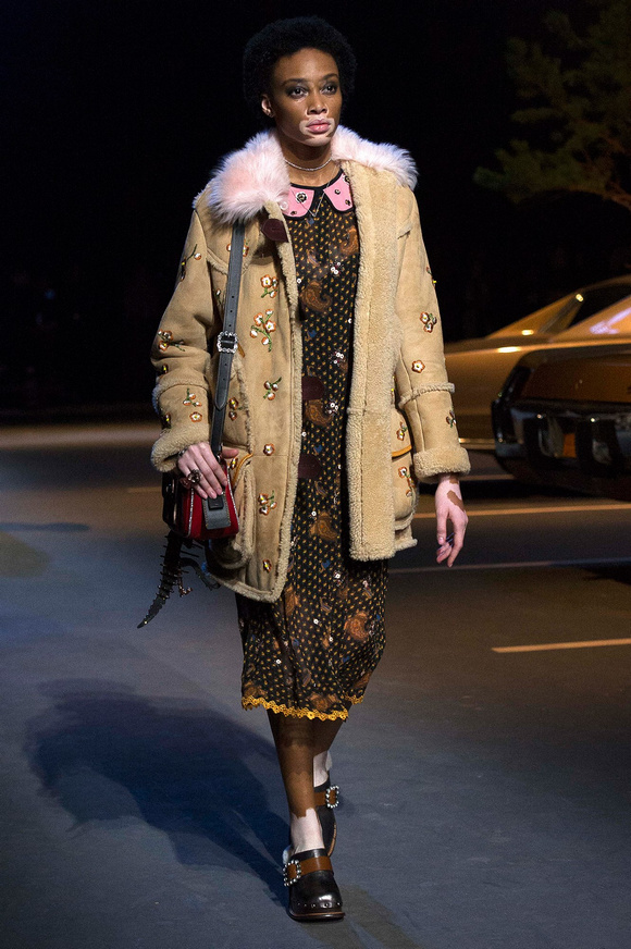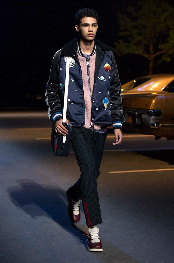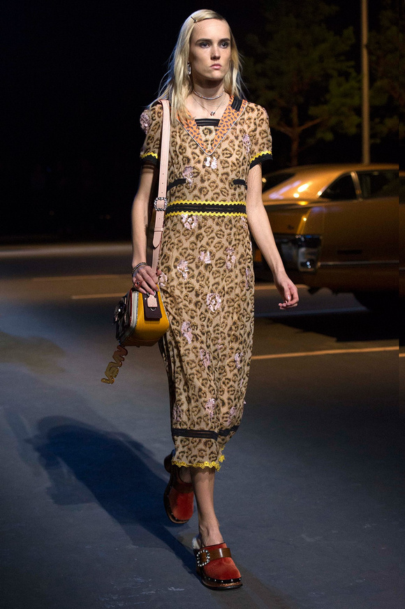 誰也不會想到,在Stuart Vevers來到Coach當(dāng)設(shè)計師前,我們要在一個寒冷的夜晚聚集在94碼頭看時裝發(fā)布會。 作為一個英國人,Vevers對美國有很深的喜愛和好奇。他的設(shè)計,每一次都找到了一種新的方法。一個季節(jié)是牛仔靴-穿著草原女孩,下一個季節(jié)是埃爾維斯的愛騎自行車的寶貝。前秋季是他最折衷混搭。迄今,他統(tǒng)一收集了我們團(tuán)結(jié)和樂觀的想法,反映了真實的的生活。