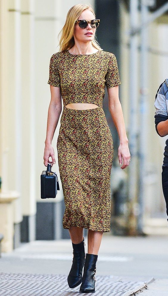 想要稍微提高點難度又要兼顧高級感,那么你可以選擇同色系搭配。這里的同色系搭配一般有兩種套路,第一種是選擇與印花底色同色的純色單品進行搭配;