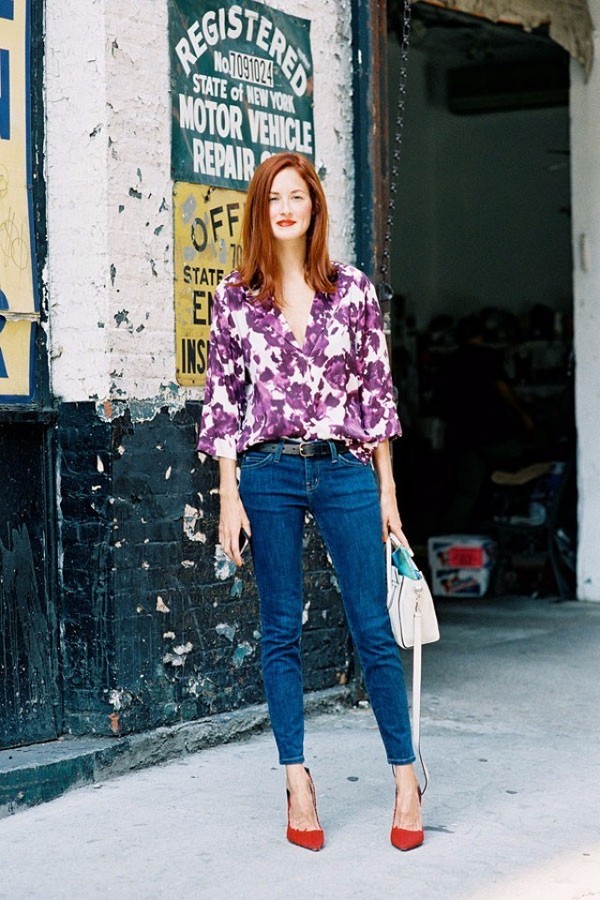 除了選擇萬能基礎色外,也可以在搭配上做減法。印花單品本身就非常搶眼了,所以搭配的其他單品就應該從簡了。像韓國時尚偶像鄭秀妍,就用牛仔褲輕松搭配出了兩套印花襯衫look。