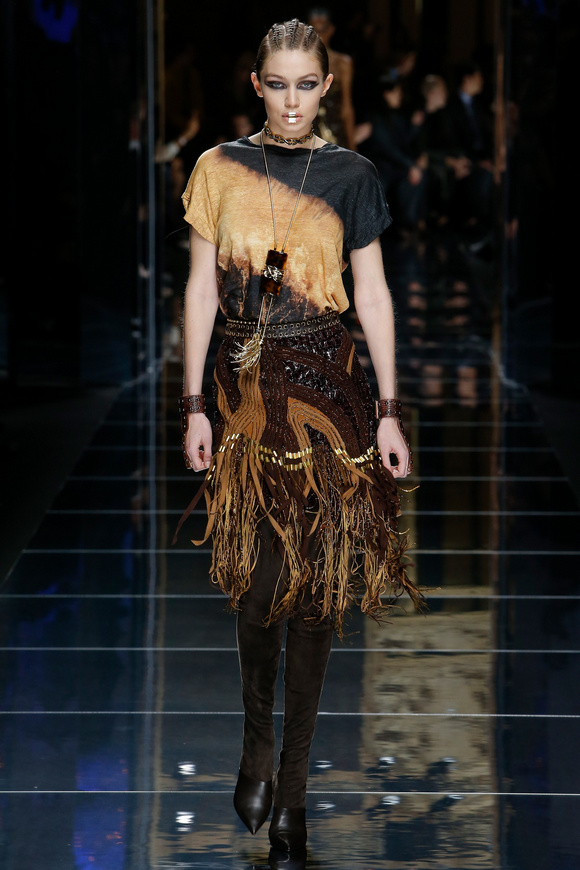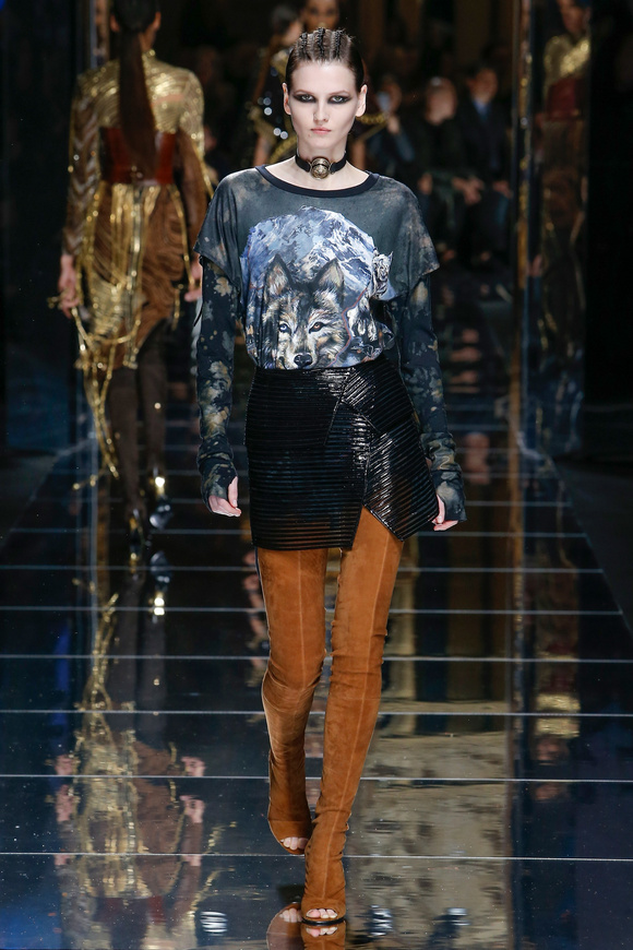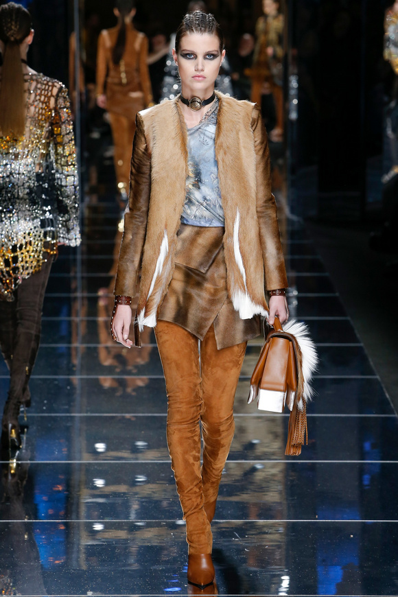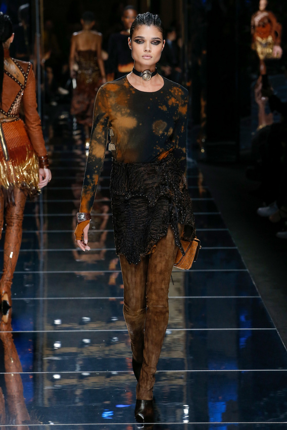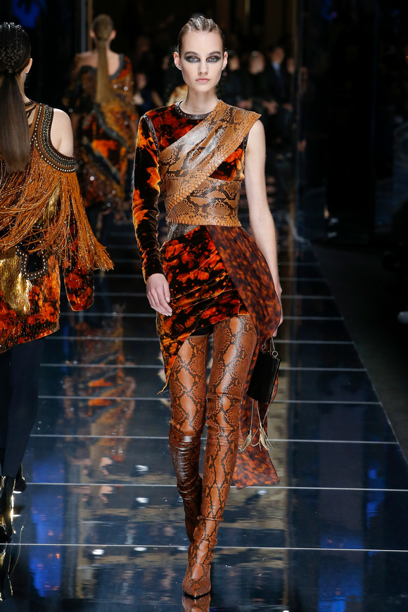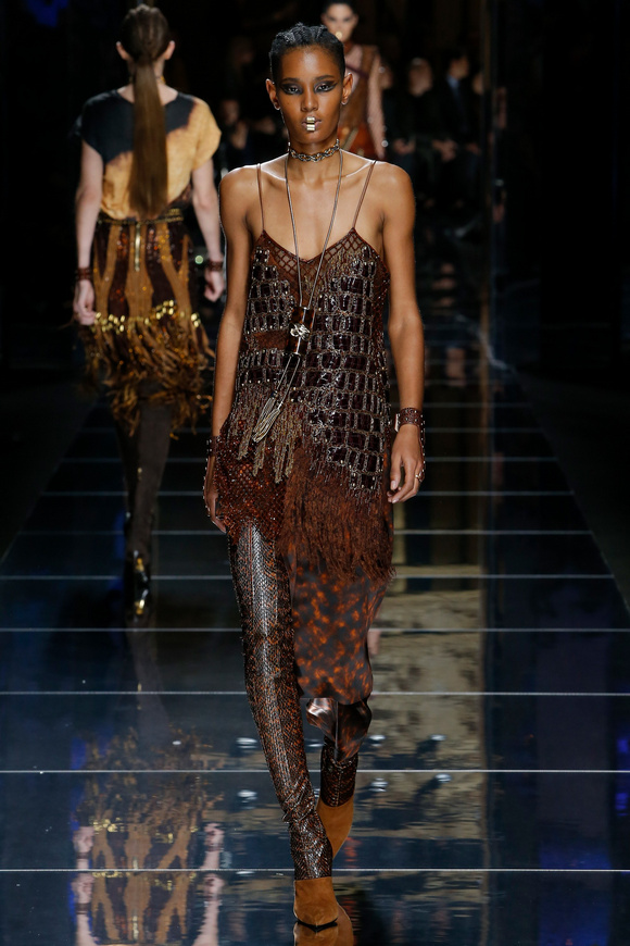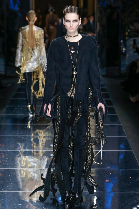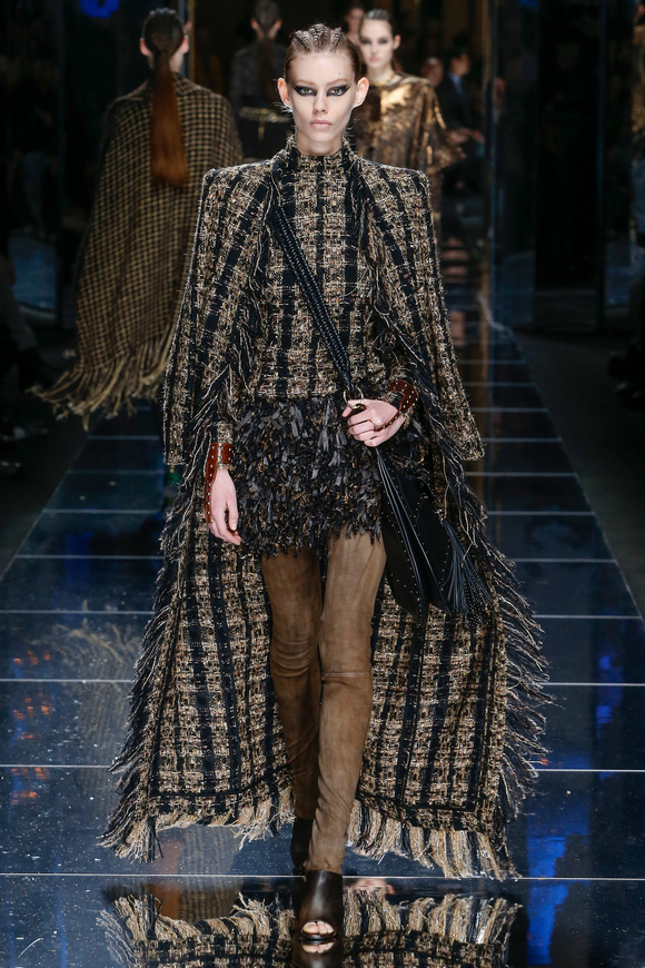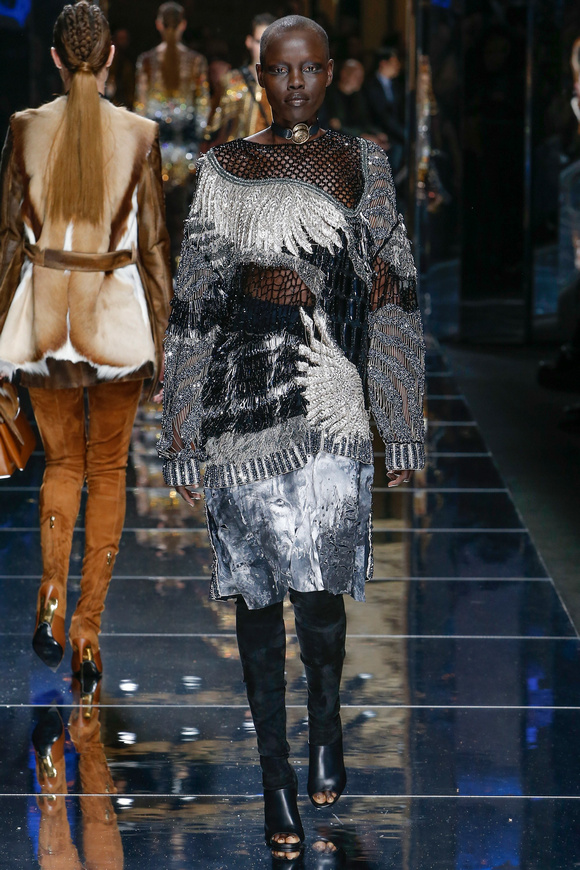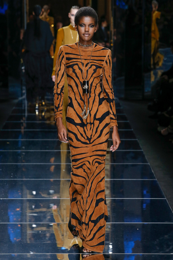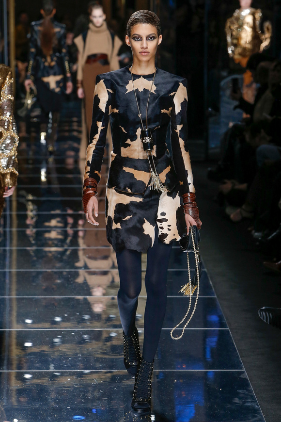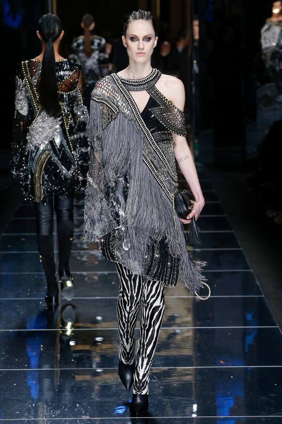 Balmain 巴爾曼的設(shè)計信念從來都沒有動搖過,就是廣泛的包容性,超越各色人種。在這一季,Balmain成功開發(fā)男裝系列,對于男裝,也采用了超緊,超短并搭配金鏈子、石榴石串、一季磨砂金亮片。在其他方面,注重顏色的運用,黑色、棕色、金色。朦朧的數(shù)碼印花、海馬毛的針織、超大的無袖羊毛背心外套、蛇皮花紋、扎染的裙子。這一季的設(shè)計真的令人目不暇接。
