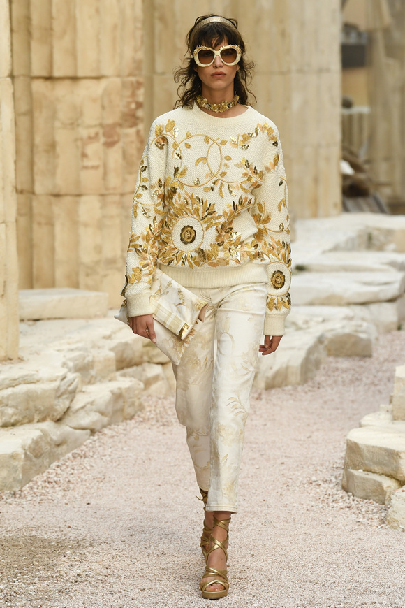 Chanel 香奈兒2018最新休閑時裝將我們帶到古希臘的凈土,在搖搖欲墜的柱子和斷裂的石板中開啟了時裝秀。這一季服裝的設(shè)計靈感,來源于希臘的關(guān)于畫廊的著名網(wǎng)站。時尚是一種周而復(fù)始的變化。