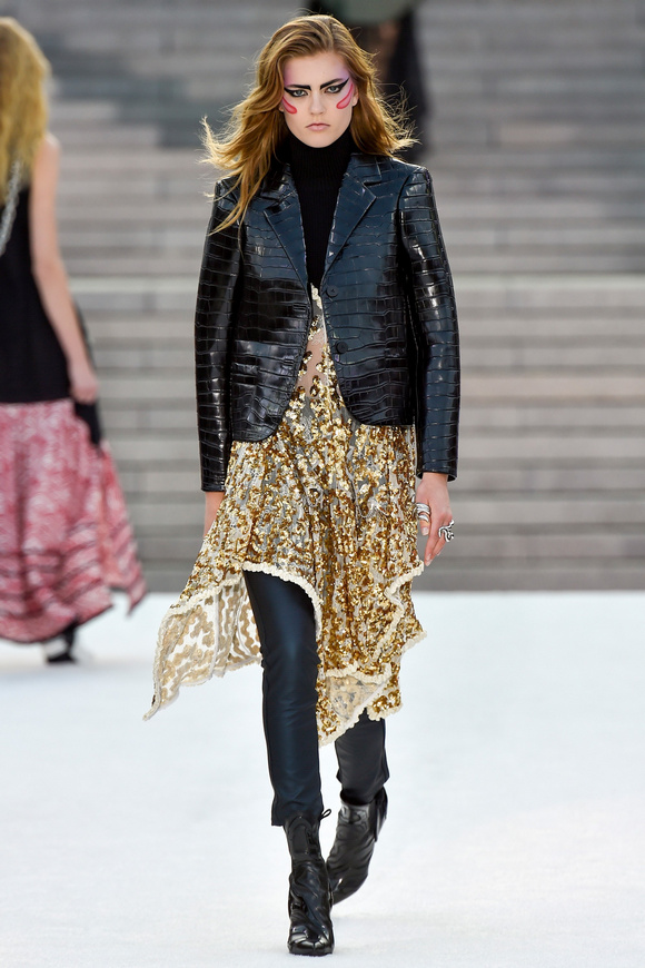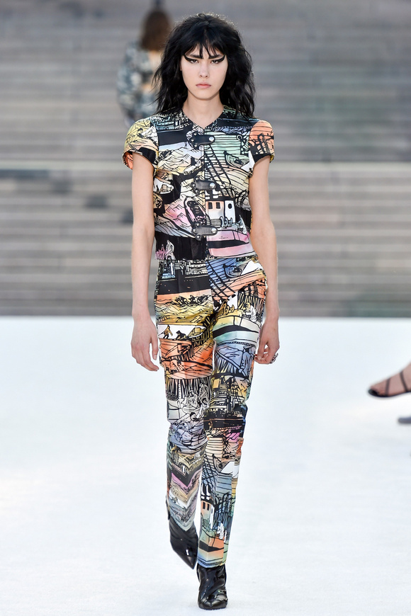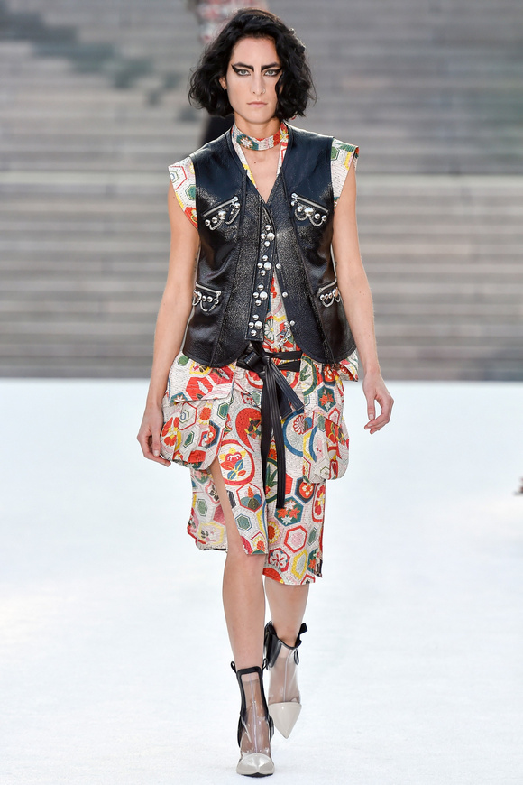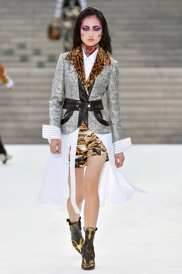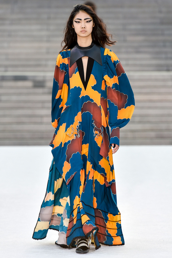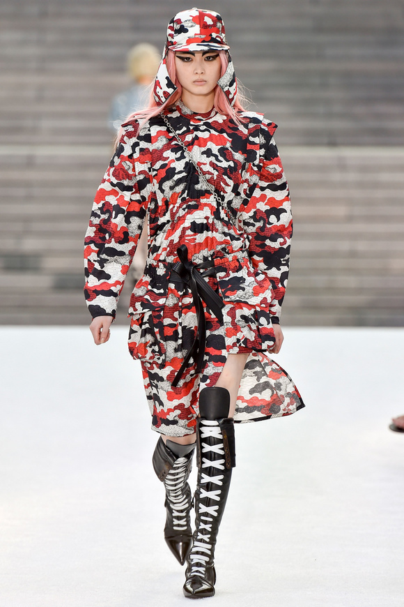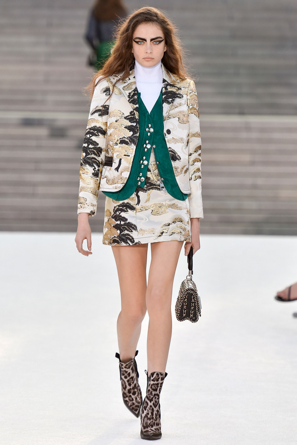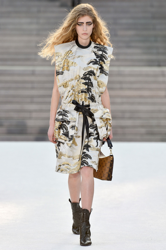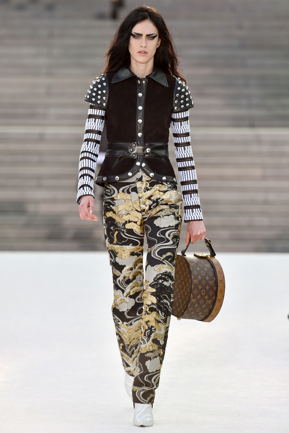 Louis Vuitton 路易斯威登2018休閑時(shí)裝這一季的發(fā)布會(huì)選在日本的京都舉行,設(shè)計(jì)師NNicolas在這里累積了大量的粉絲。這一季的設(shè)計(jì),將日本的武士盔甲、黑澤明的顏色、歌舞伎化妝、傳統(tǒng)版畫(huà)的漁民和70年代晦澀的日本電影系列的元素都混雜在一起。