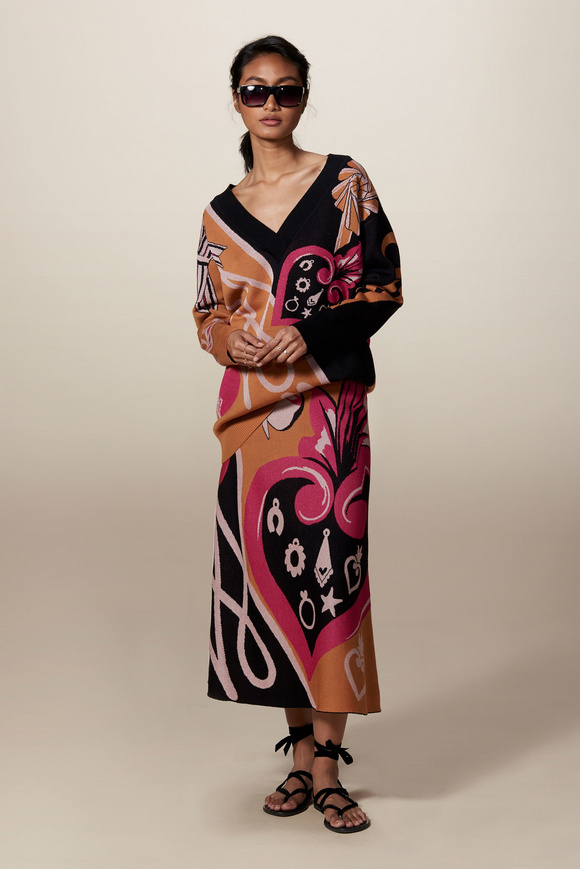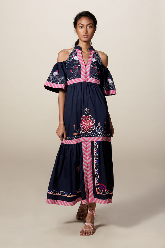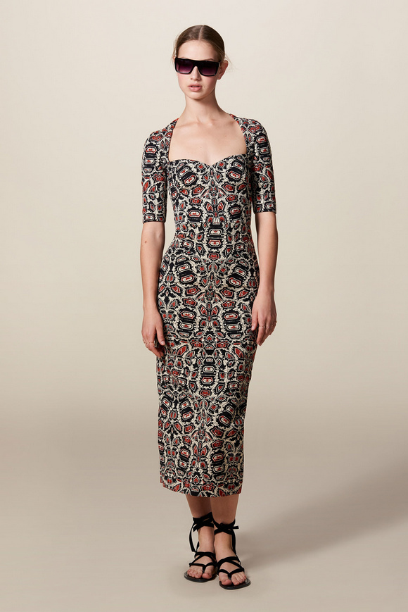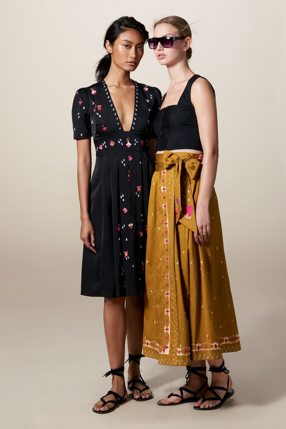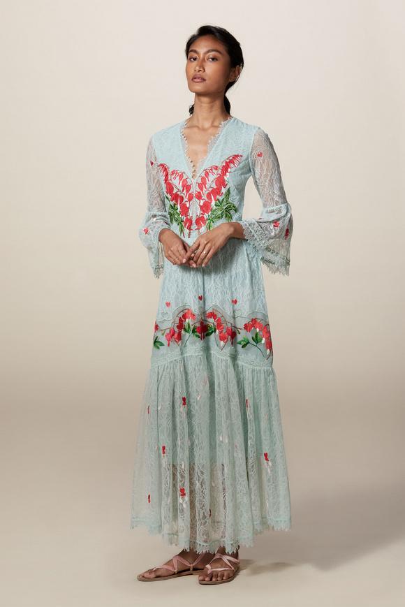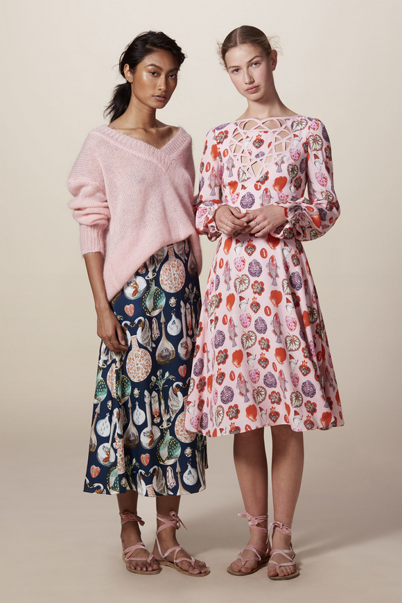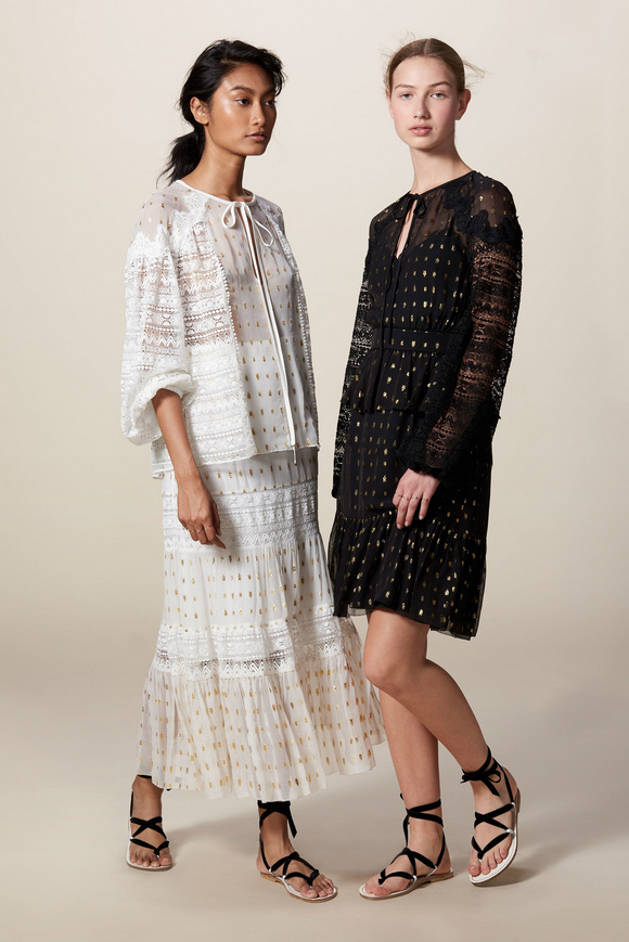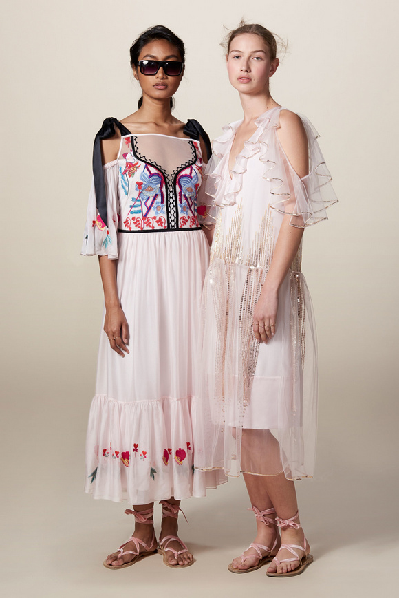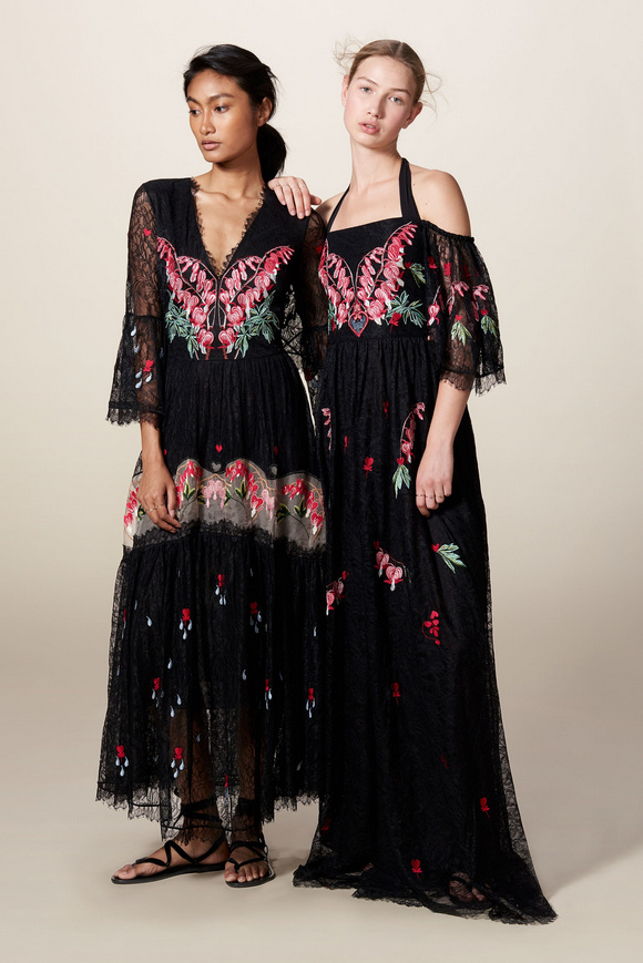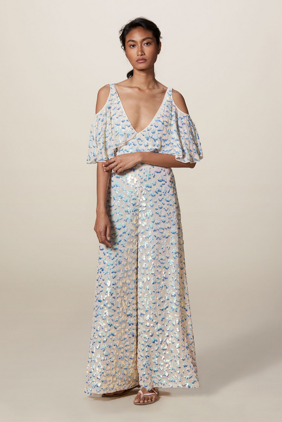 Temperley London 坦波麗倫敦 這一季的休閑服裝的亮點(diǎn)包括魔法圖案、金屬貼壓花朵的魅力,還有密密麻麻的印花、煉金圖紙等。印花裙的特色是運(yùn)用更多的同心圓符文模式。寬腿褲和女巫袍更顯特色。花邊的衣服和領(lǐng)子細(xì)節(jié)顯示中世紀(jì)藥劑師的酒壺和軌道的行星。心形亮片閃閃發(fā)光的衣服和裙子,更在最后照片中,一個(gè)是開放的武裝連衣褲和皺褶的武裝打扮,微亮片從不透明變成藍(lán)色。