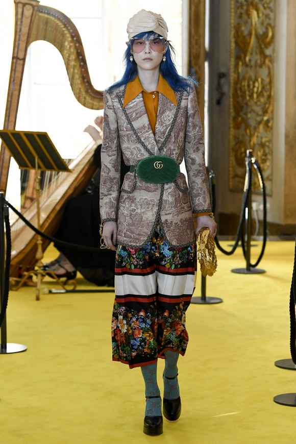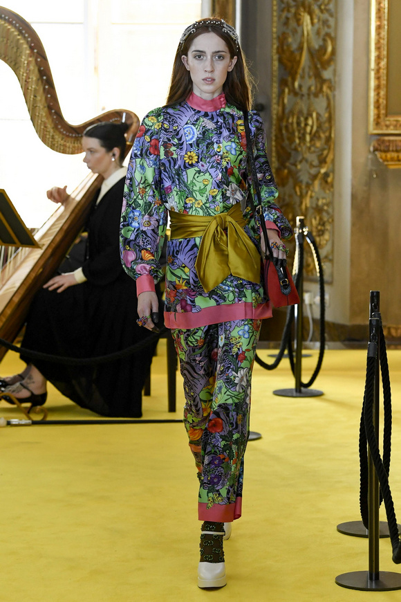 Gucci的首席設(shè)計(jì)師Alessandro Michele在游輪上舉辦這一季的時(shí)裝發(fā)布會(huì)。這個(gè)品牌開(kāi)始的時(shí)候,都是從地中海、希臘和羅馬文化為設(shè)計(jì)靈感的。所以他這一季走上了文藝復(fù)興的下一大步,所以這一季時(shí)裝發(fā)布會(huì)的我們把場(chǎng)地布置成來(lái)到了這個(gè)迷人的大都市--過(guò)去的佛羅倫薩。