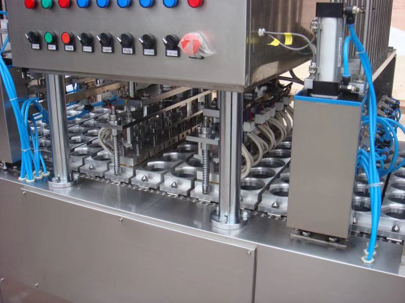 3、 效率高,可對(duì)多個(gè)容器同時(shí)進(jìn)行充填、封口、切邊等。
